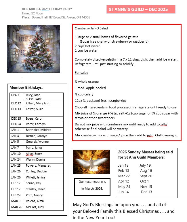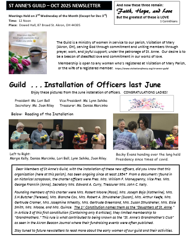 They assist with planning church events and fundraising activities, they offer support to grieving families and generally contribute to the social and spiritual well being of the parish community.